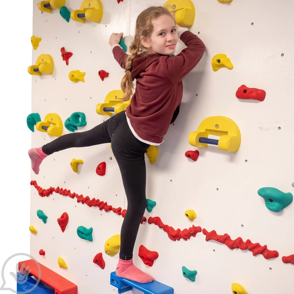 Ideal for inclusive or adapted physical education, occupational therapy and physical therapy and provides opportunities to develop balance, body awareness, muscle strength, gross motor skills and more. Send us your room dimensions! We will customize your wall to your space. For larger sizes please contact us.