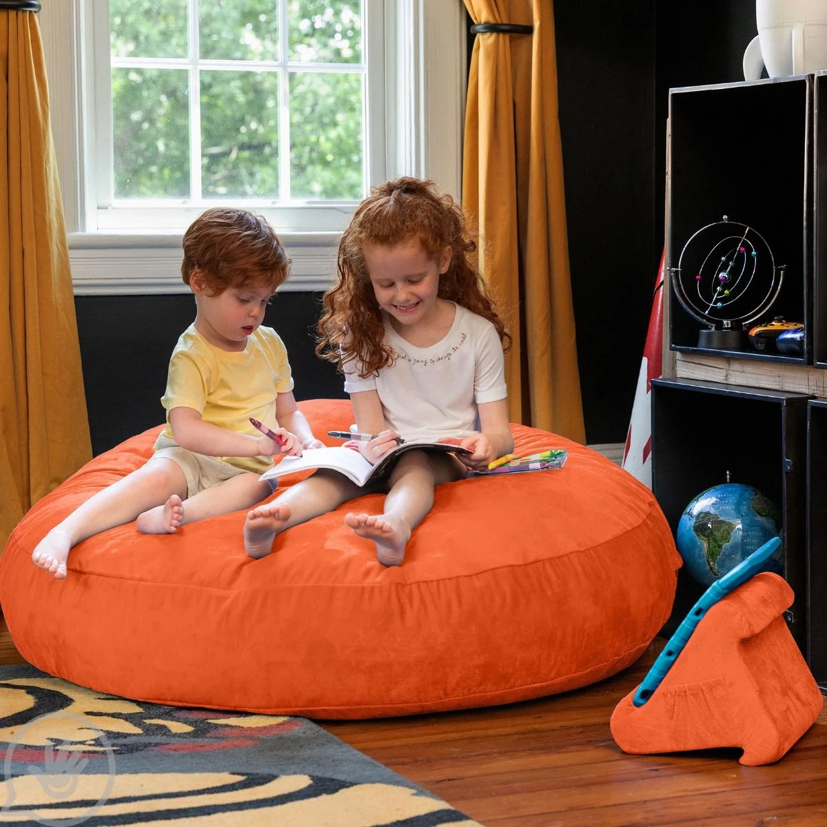A place to crash, read and rest, all in one! This giant bean bag is a great for active kids and sensory seekers. Laid flat, it’s a crash pad. Flip on its side for cocoon-like support that creates a cozy nook.
