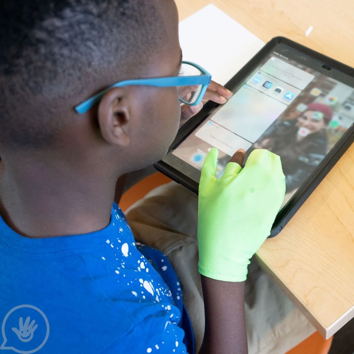 Slip on our Pointer Finger Isolator and improve your ability to touch, type and swipe! Whether you’re using an iPad, mobile device, or augmentative communication device, this tool helps users with limited dexterity operate their devices with greater ease and efficiency. The glove isolates the pointer finger while snuggly tucking the other fingers away to prevent finger dragging. Designed for kids, teens and adults, it’s made of lightweight and breathable material for a snug and comfortable fit. Can be used by both right handed and left handed people.