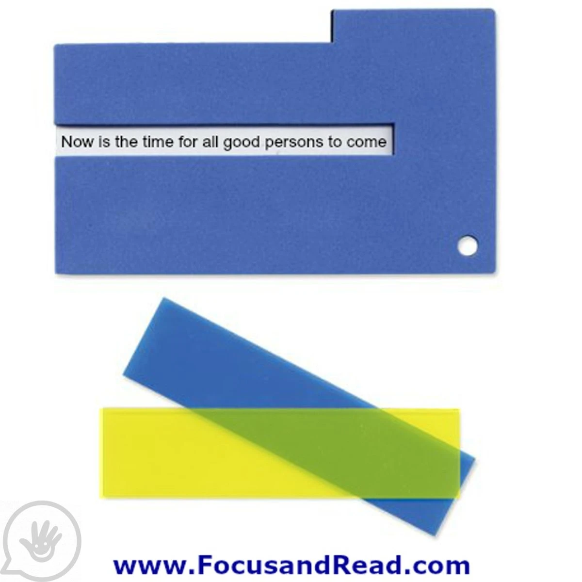 These patented Reading Focus Cards make reading easier by blocking out surrounding text and helping the eye to focus only on one or two lines. Each Combo Pack contains all the components necessary for customizing two different-sized tools for most printed formats. Recommended by developmental optometrists, the Reading Focus pack comes with three filter colors that let readers change the white background of a page in order to diminish or eliminate visual stress.