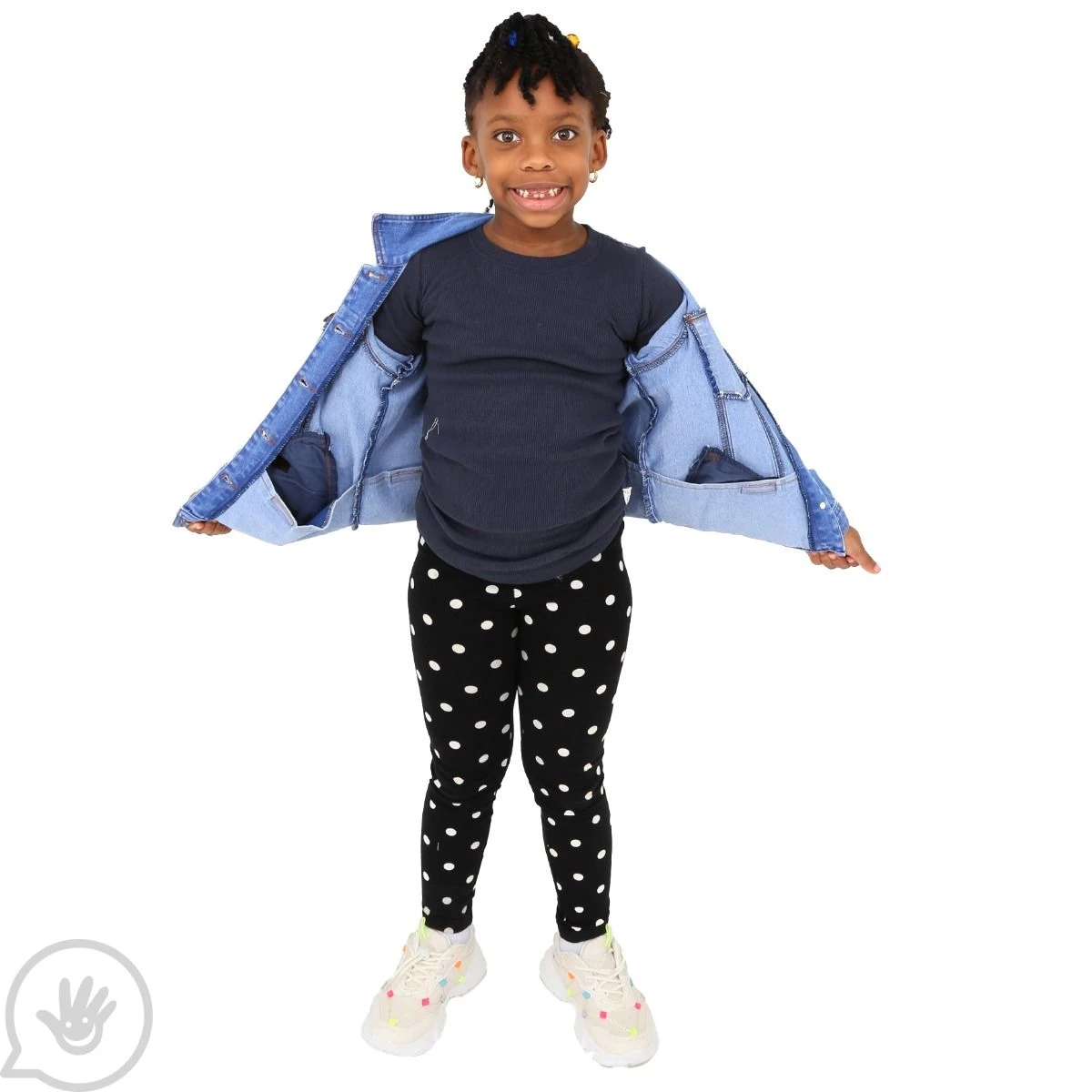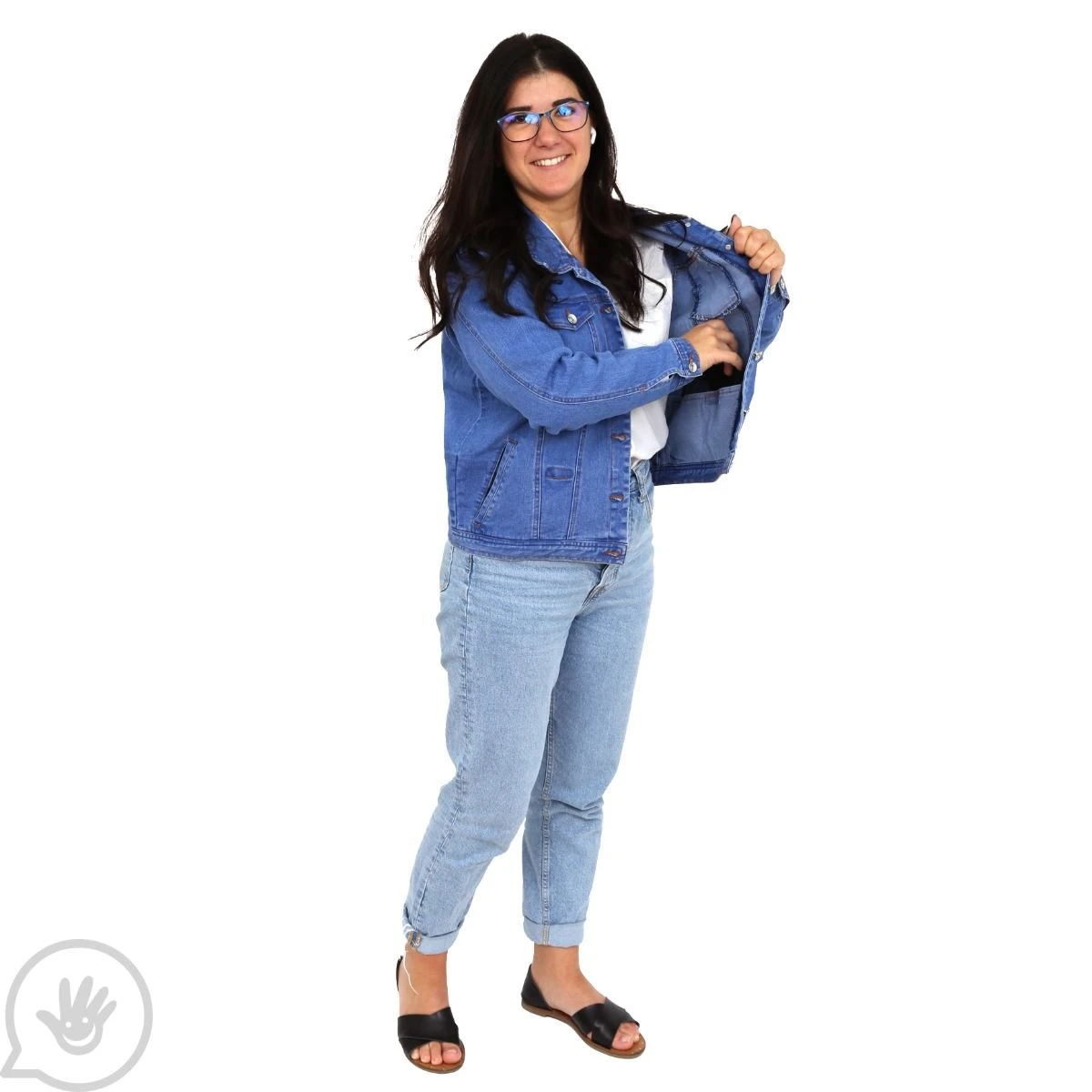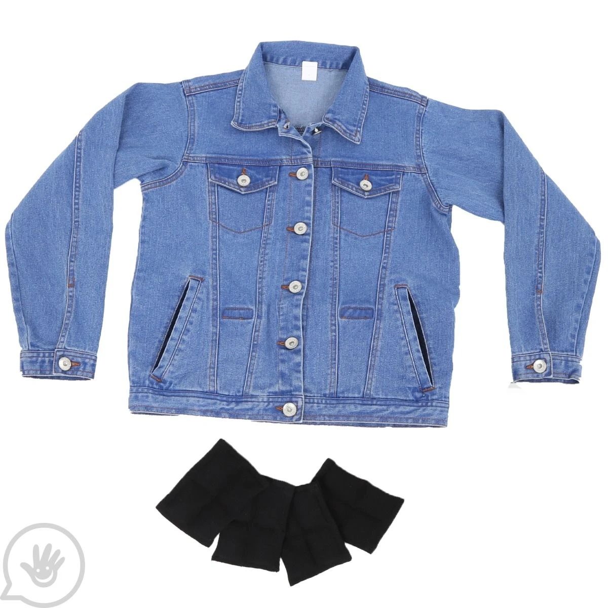 Timeless and trendy weighted clothing! Our cool denim jacket looks like any other jean jacket – but with its interior pockets for weights it’s a sensory solution too. Slip the included weights into the interior pockets for steady proprioceptive input that helps kids feel relaxed and centered. Customize your calm! Choose the number of weights you want to use, and place them in any of the interior pockets. The weights are compact to avoid excess bulk and stay put in the pockets thanks to hook-and-loop closures. The jacket is made of soft and stretchy denim for comfort and the exterior front pockets are lined with smooth velvet for extra tactile input. It’s a chic sensory jacket you can wear anywhere!