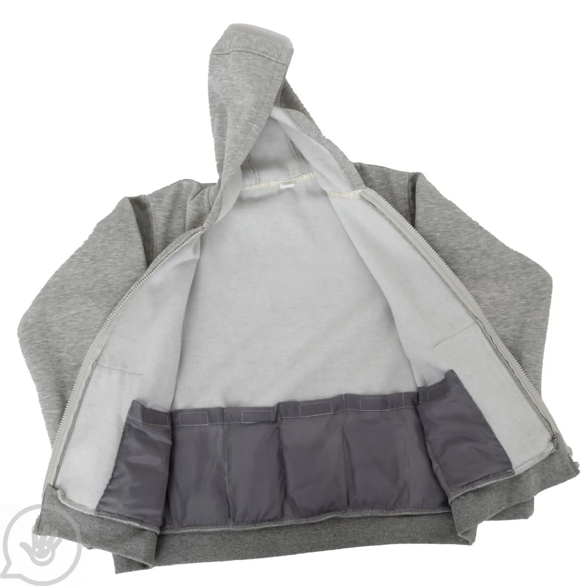 - Zip up the sweatshirt, pull up the hood and place hands into fleece-lined pockets for an extra cozy feeling