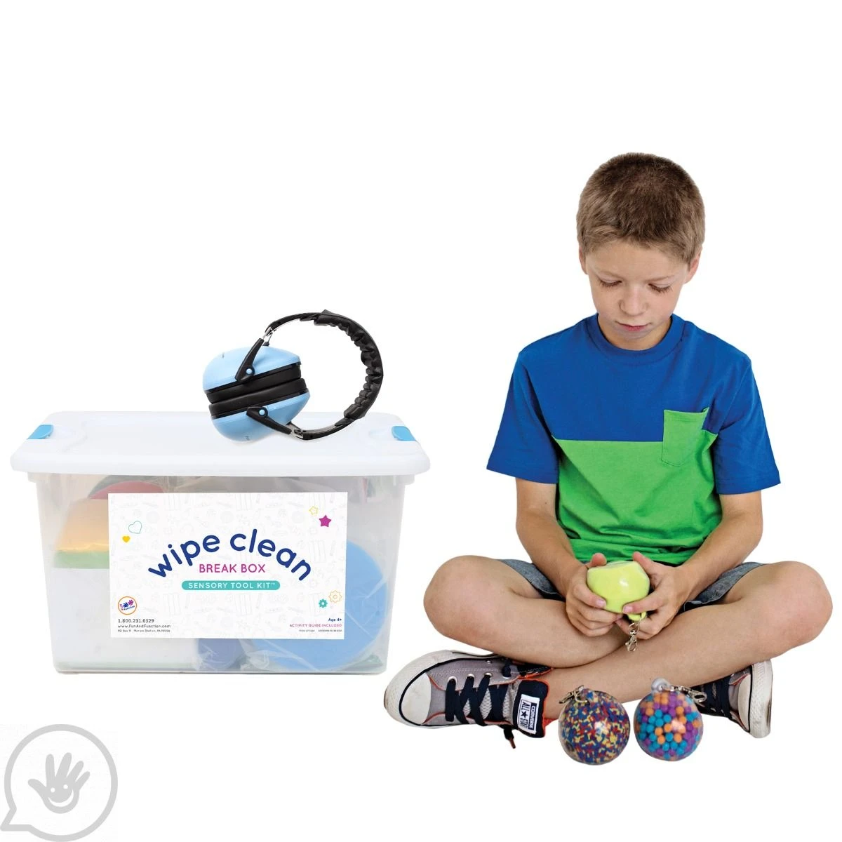 Looking to support sensory needs, but concerned about spreading germs? Our Wipe Clean Break Box is packed with popular sensory tools that are all easy to sanitize. Help kids channel energy, reduce disruptive behavior and boost focus. Provide sensory breaks and incorporate sensory activities throughout the day. Durable box includes activity guide and bonus sanitizer!